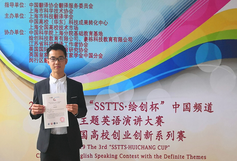 11月23日,第三届“SSTTS杯”China Channel主题英语演讲赛暨全国创业创新系列赛(全国决赛)在中科院上海分院2号报告厅举行。由高云柱老师指导的数学与统计学院肖乐天同学荣获国家级一等奖,创我校历史最好成绩。